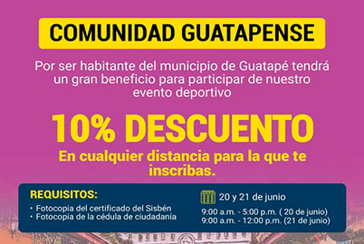 “Desde la semana pasada venimos adelantando la campaña… con respecto al 10% de descuento en cualquiera de las tres distancias para la comunidad de Guatapé”, comentó Steven.