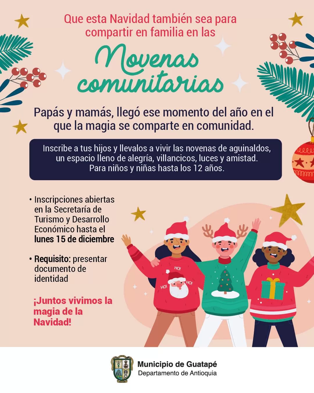 La temporada decembrina llega con toda su magia al municipio, y este año las tradicionales novenas infantiles en el Parque Principal prometen reunir a las familias de Guatapé en un espacio lleno de unión, juego y tradición. La Secretaría de Turismo y Desarrollo Económico abrió oficialmente las inscripciones para que todos los niños residentes del municipio, hasta los 12 años, participen en estas jornadas especiales.
