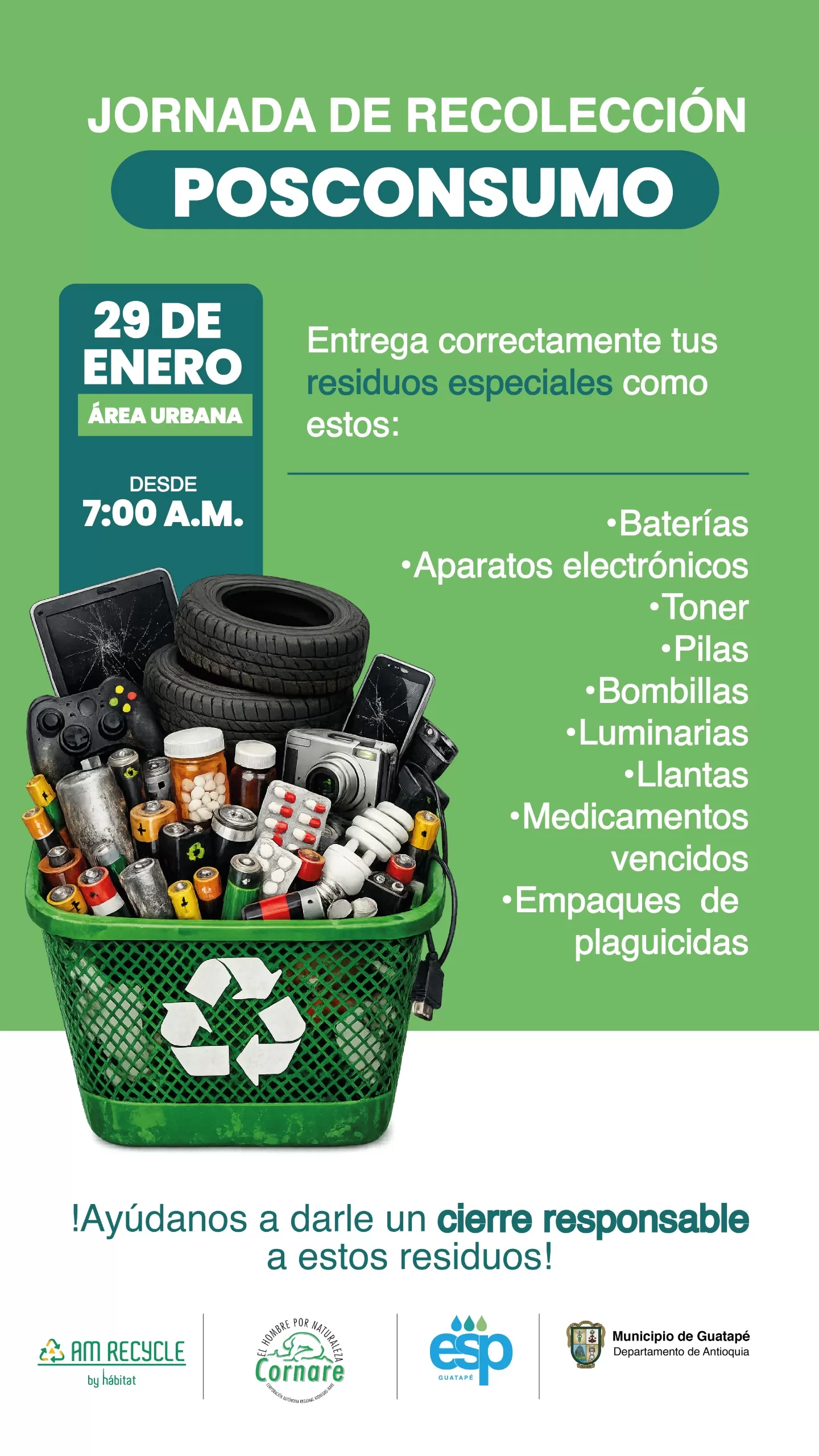 Guatapé vivirá este jueves una jornada especial de recolección de residuos posconsumo, una estrategia ambiental que busca garantizar el manejo adecuado de elementos que, por su composición física y química, requieren un tratamiento especial antes de llegar a su disposición final.