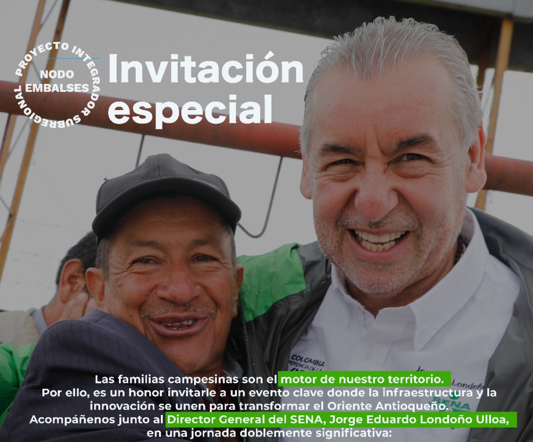 Guatapé, Antioquia – En una visita de trabajo programada para este viernes 6 de febrero de 2026, el director nacional del Servicio Nacional de Aprendizaje (SENA), Jorge Eduardo Londoño Ulloa, se desplazará hasta la Vereda Quebrada Arriba de este municipio para supervisar de primera mano los avances y resultados del Proyecto Integrador Subregional Nodo Embalses.
