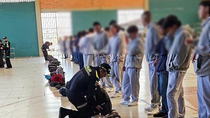 Durante la jornada se están realizando registros a estudiantes de los grados noveno y décimo, tanto en el coliseo como en distintos espacios de la institución, como parte de una campaña institucional orientada a la prevención del consumo de sustancias psicoactivas y el porte de elementos prohibidos.