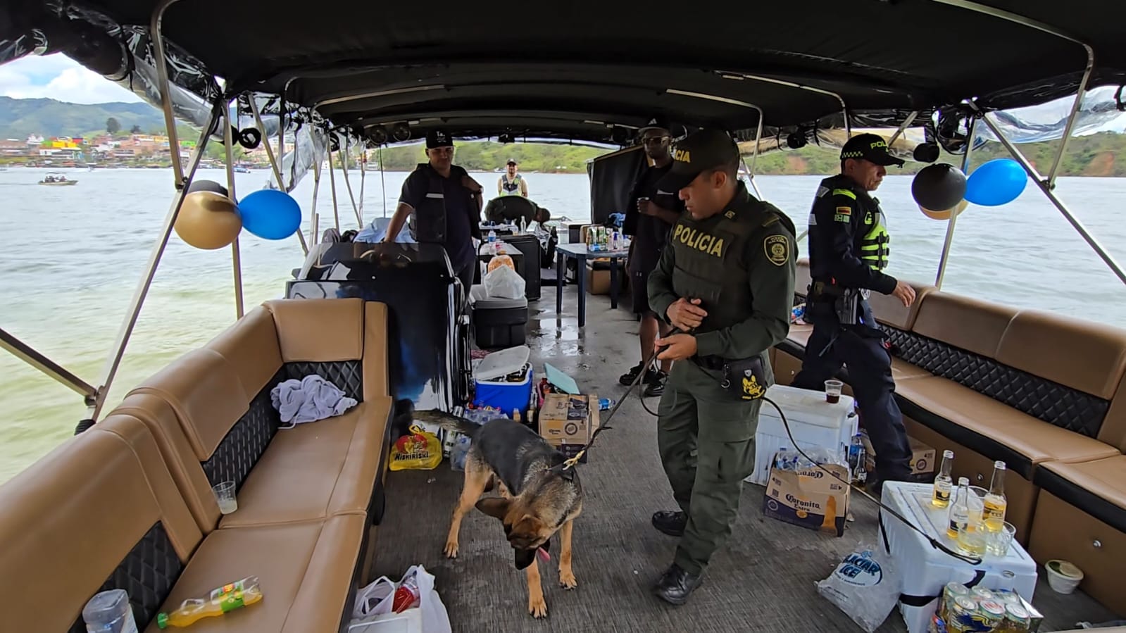 En el embalse de Guatapé se reforzó la vigilancia a embarcaciones turísticas, especialmente aquellas relacionadas con fiestas flotantes. Se realizaron controles a 11 planchones, con un total de 380 personas registradas. Como resultado, se impusieron 25 medidas correctivas por porte de sustancias psicoactivas, y se incautaron 14 gramos de cocaína, marihuana y drogas sintéticas.